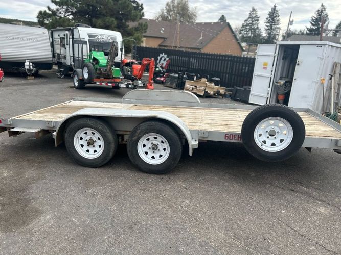 2012 Big Tex 60CH-16 Car Trailer for sale. It features a wood deck that is 83" wide and 16' long. Tandem Axle with brakes, and a spare tire mounted on the side. With a GVWR of 6,000 lbs, this trailer is plenty capable of hauling small cars and suvs, as well as atvs/utvs or other light equipment. It shows some wear and tear but nothing stopping it from operating the way it should. This trailer has plenty of life left. Does not come with ramps.