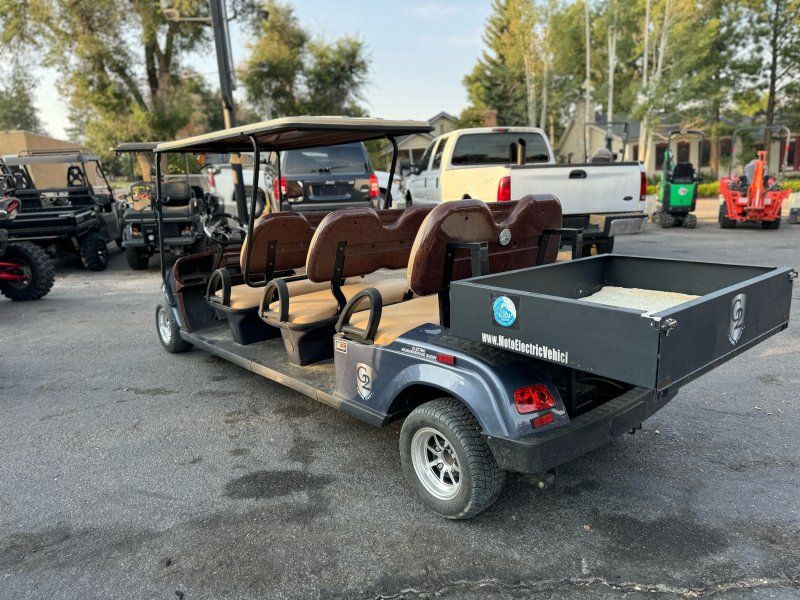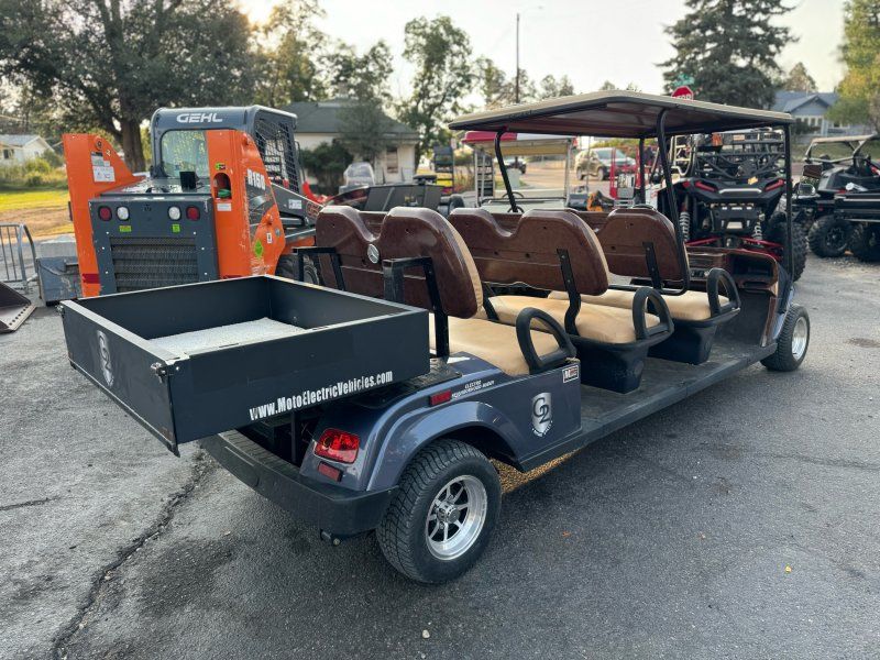MotoEV 6 passenger forward facing cart with utility bed. This cart has an msrp new of $14,285. Just installed new AGM batteries. This cart is really nice and super useful. Beautiful blue paint. Wood grain look plastrics on the interior. Everything on it is in good condition.